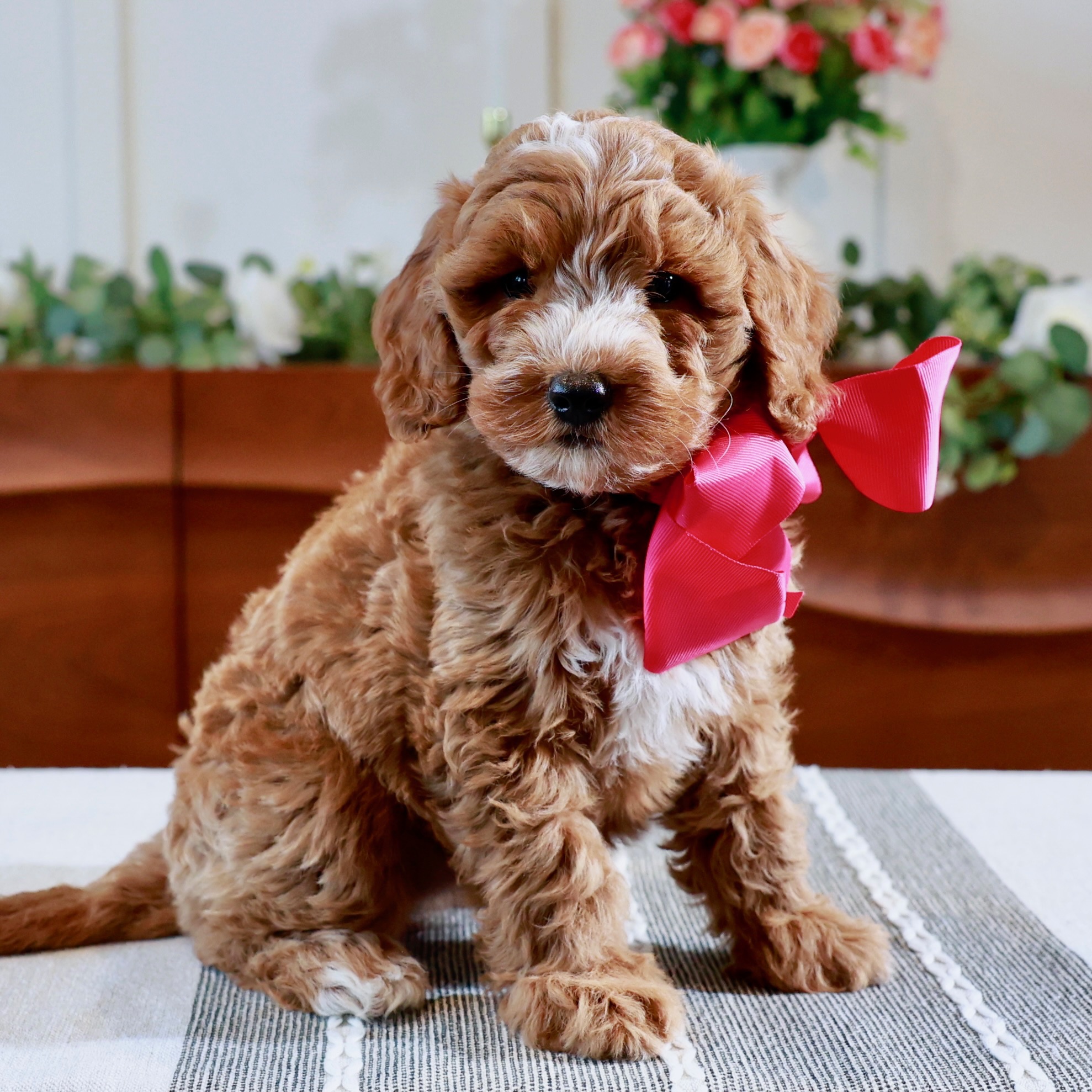 Oakley and Toby had a litter of Miniature F1b Goldendoodles.  They will be around 20 pounds at maturity. Puppies will have a wavy to curly coat. They come up to date with age appropriate vaccinations and dewormings. They will have a 2 year genetic health guarantee against any life altering conditions. Complete puppy application or give us a call to place your $500 deposit.
