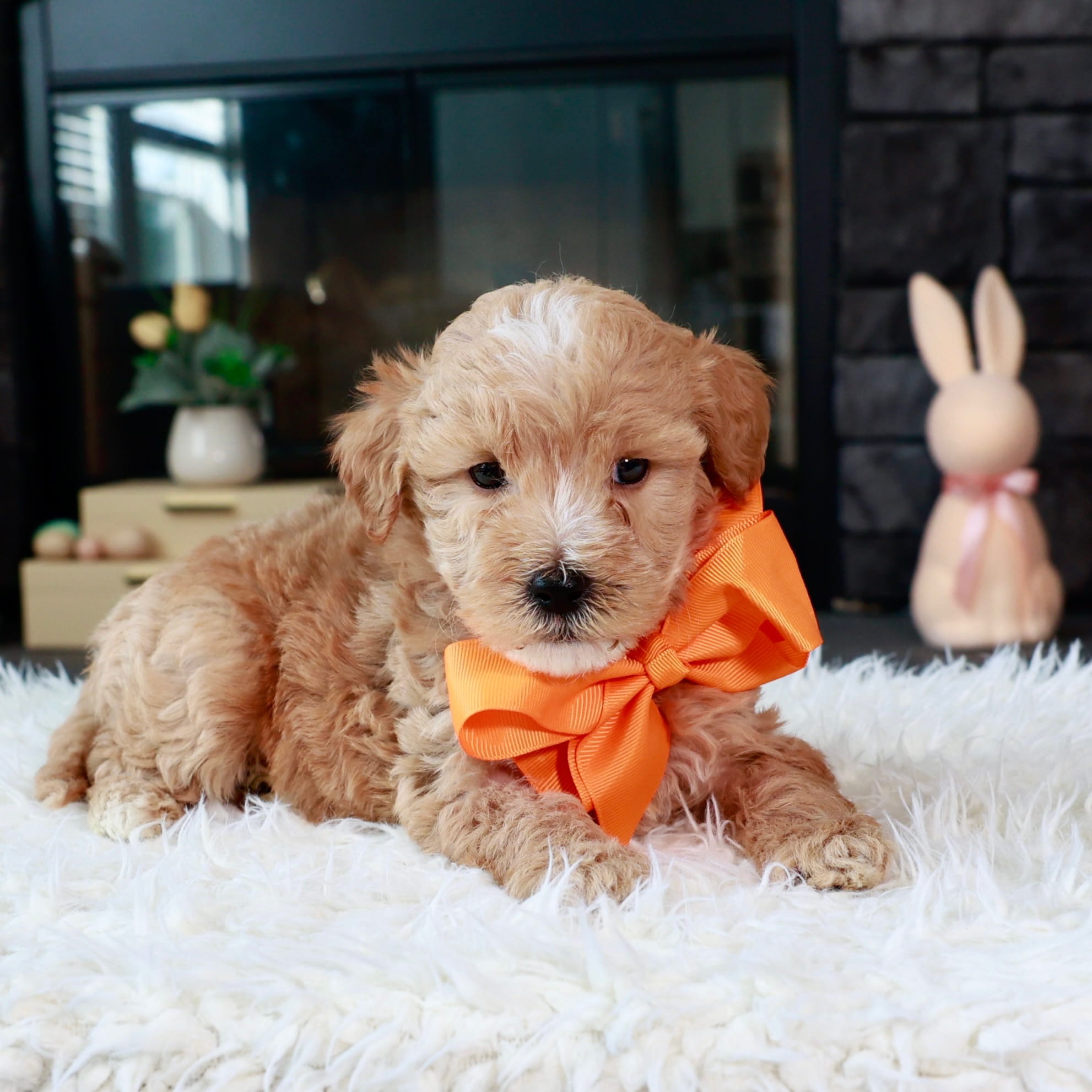 Zoe and Toby had a litter of Miniature F1b Goldendoodles.  They will be around 20-25 pounds at maturity. Puppies will have a wavy to curly coat. They come up to date with age appropriate vaccinations and dewormings. They will have a 2 year genetic health guarantee against any life altering conditions. Complete puppy application or give us a call to place your $500 deposit.